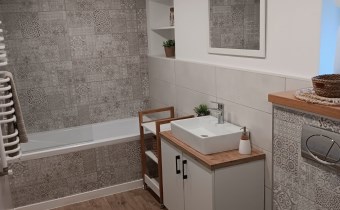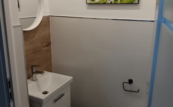- Piętro: dwie sypialnie (w tym jedna z balkonem) oraz łazienka z prysznicem