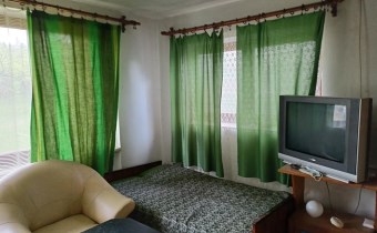 W przyziemiu znajduje się pokój, kuchnia, łazienka oraz garaż, w którym urządzono warsztat.