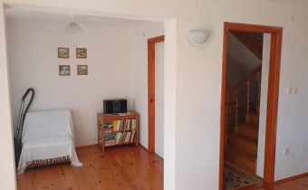 Parter: duży salon z balkonem, pokój, kuchnia, łazienka, komunikacja.
