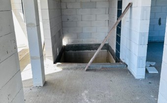 Dom w trakcie budowy, ściany z pustaka pianowego (typu Suporex), ocieplone styropianem 20cm.