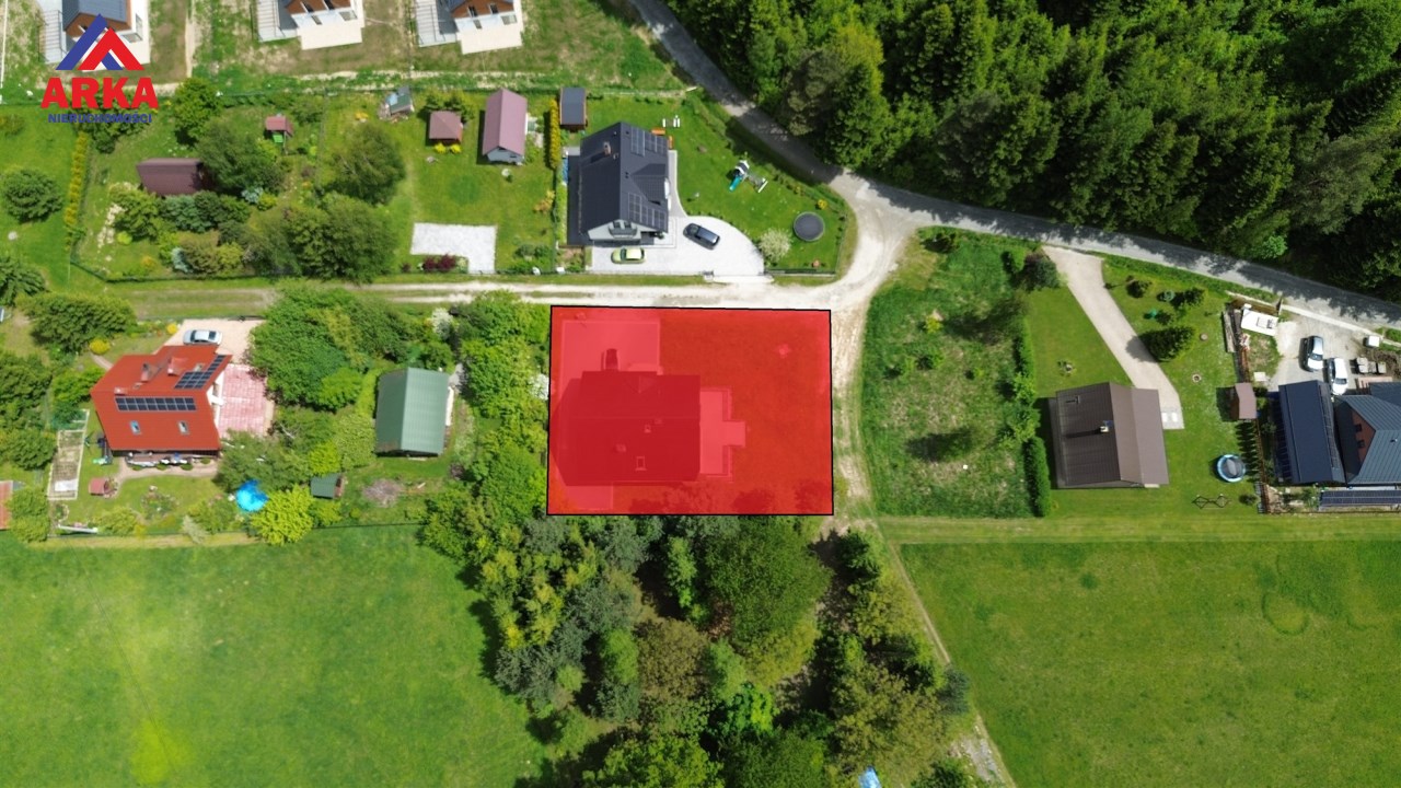 Budynek posadowiony na działce o powierzchni 704m2, która jest wyrównana i przygotowana do dalszej aranżacji. Przed garażem podjazd na kilka samochodów wykonany z kostki brukowej.