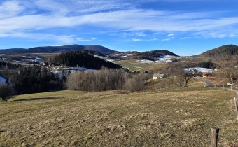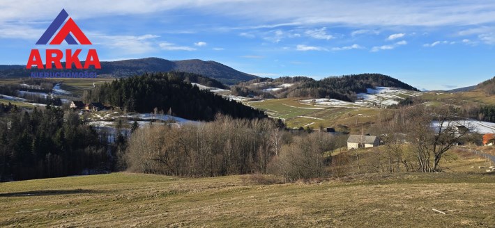 Działka położona na południowym, doskonale nasłonecznionym stoku z pięknym widokiem na praktycznie niezurbanizowany teren. W okolicy tylko kilka domów (najbliższy ok. 100m) oraz łąki i las. Przez tą niewielką okoliczną zabudowę, wydaje się że czas w tym miejscu się zatrzymał i rządzi tu natura.