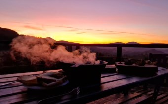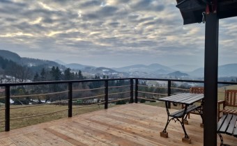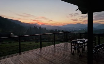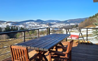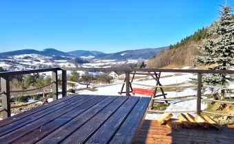 Jeden z istniejących domków posiada imponujący taras widokowy o powierzchni ok. 40 m² – to właśnie tutaj spędza się najwięcej czasu, a widoki jakie się z niego roztaczają zapierają dech w piersiach o każdej porze roku.