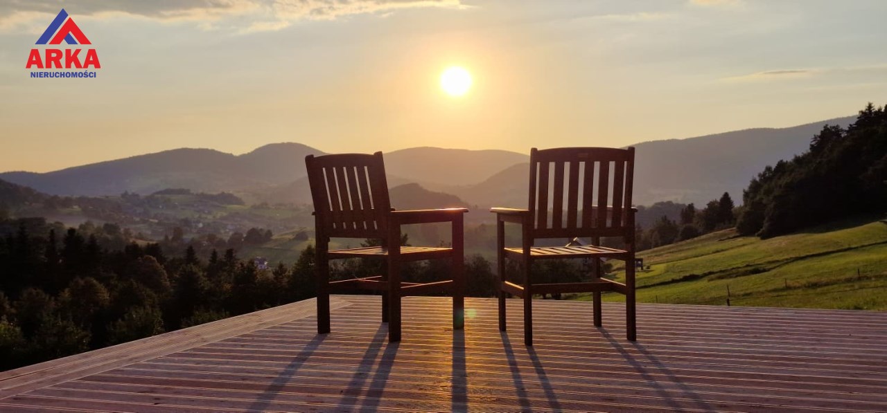 Położona w samym sercu Beskidu Wyspowego, na doskonale nasłonecznionym stoku o ekspozycji południowo-zachodniej, oferuje panoramiczne widoki, ciszę, czyste powietrze i bezpośrednie sąsiedztwo lasu. To miejsce, w którym każdy zachód słońca wygląda inaczej – i każdy robi wrażenie.