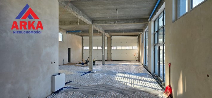Wynajmujący planuje wykończyć budynek i zaadaptować go do potrzeb najemcy, a także dodatkowo przebudować ogrodzenie i wjazd na działkę. Przed budynkiem wykonano już wyłożony kostką brukową parking, który z powodzeniem pomieści kilkanaście samochodów i pozwoli na dogodny dojazd w każdych warunkach pogodowych.