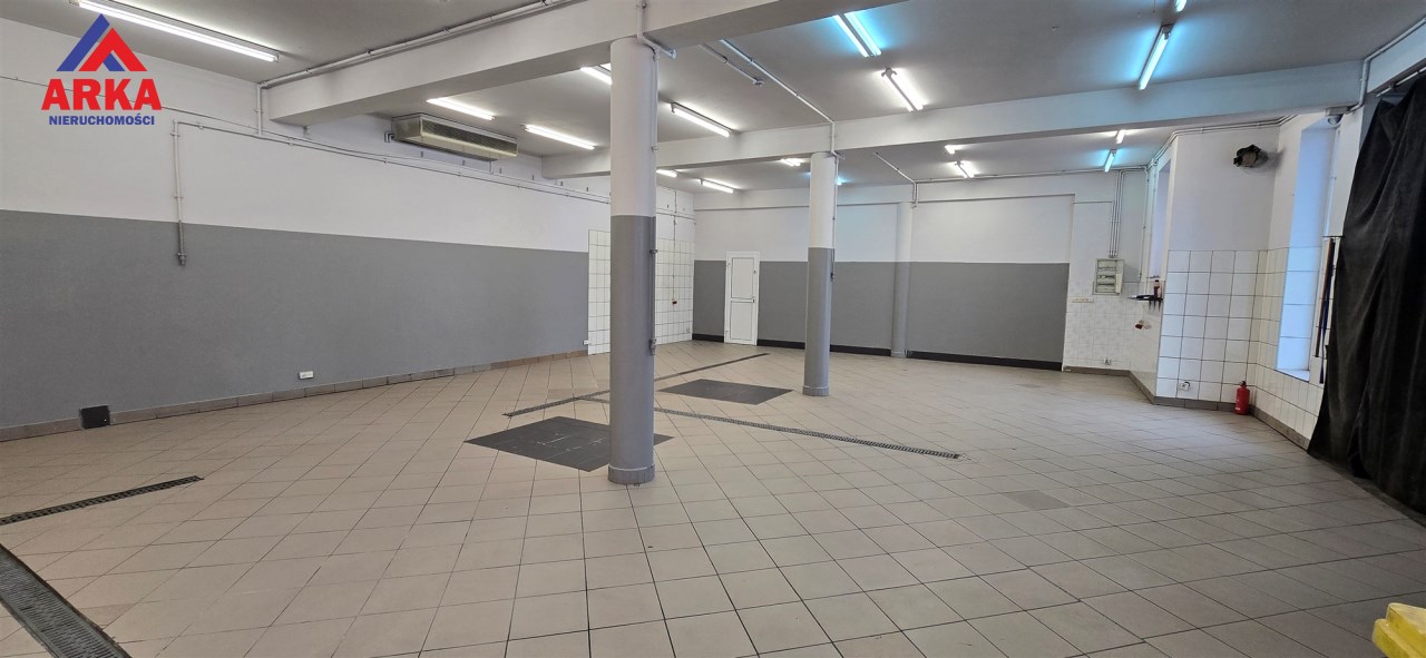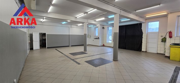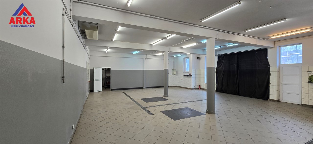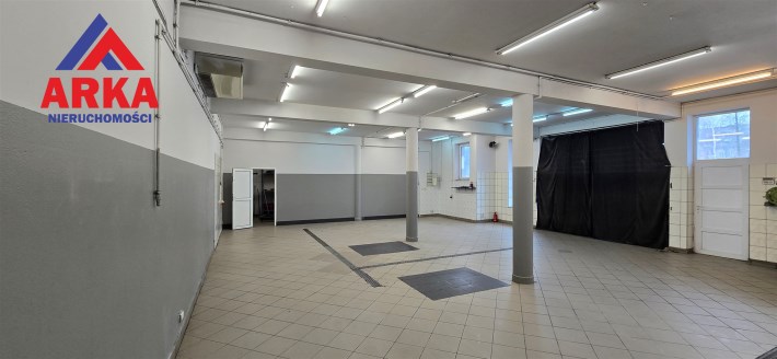 Lokal o powierzchni ok. 120 m² składa się z przestronnej hali głównej o wymiarach ok. 12,5 × 9 m oraz zaplecza sanitarnego. Wysokość wnętrza wynosi ok. 3,2 m, co w połączeniu z dużą bramą wjazdową daje szerokie możliwości prowadzenia różnego rodzaju działalności – również wymagającej swobodnego wjazdu pojazdów lub wózka widłowego.