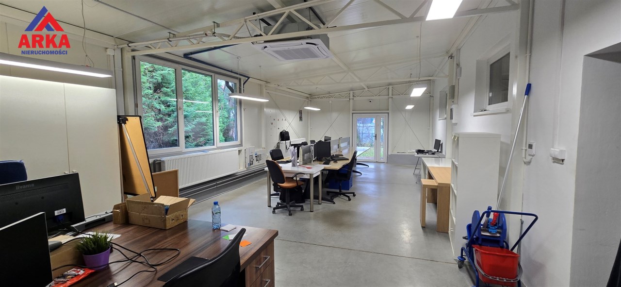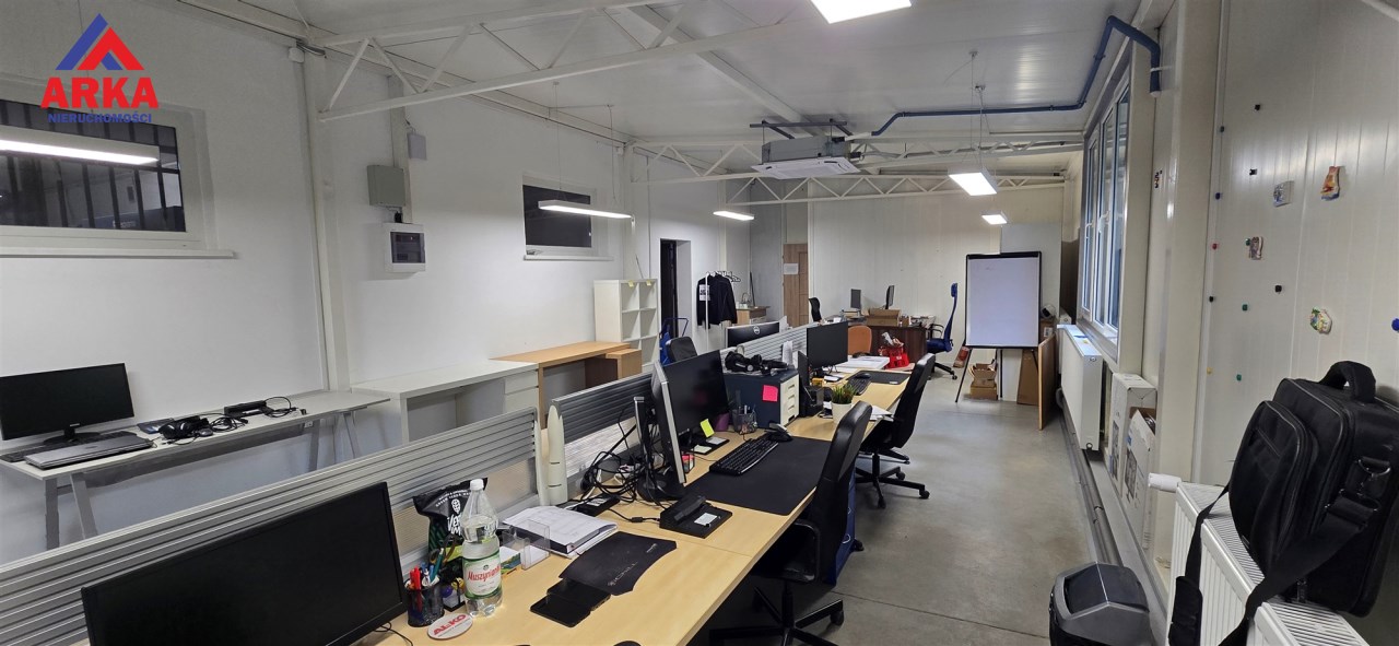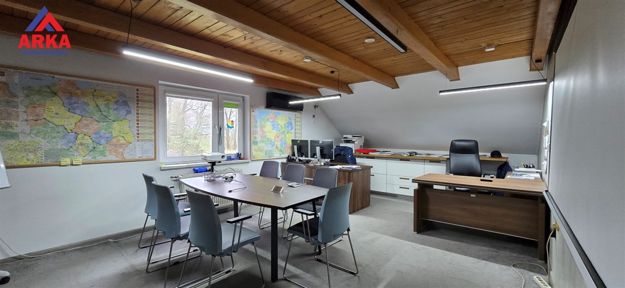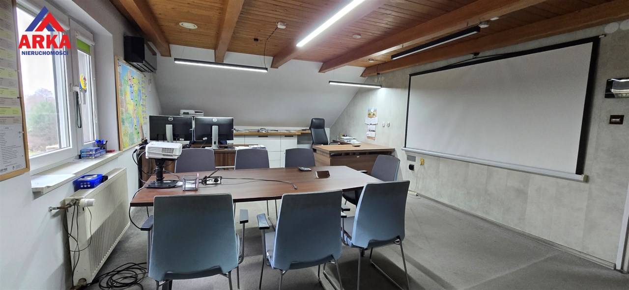 Budynek biurowy składa się kilku mniejszych i dwóch większych pomieszczeń ( 46 i 50m2) oraz zaplecza sanitarnego, ogrzewanie centralne na olej opałowy, klimatyzacja.